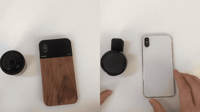 「USHADOW X1 レンズシステム」は、レンズとスマートフォンケースの接合にマグネットを採用。接合部を合わせるだけで装着が完了します。