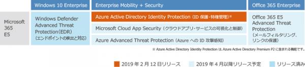 サイバーキルチェーン(※2)に基づく多層防御製品である Windows Defender Advanced Threat Protection、Azure Active Directory Identity Protection、Azure Advanced Threat Protection、Cloud App Security などが Microsoft 365 Enterprise E5 として提供されており、これによって Office 365 を中心としたクラウド中心のビジネス環境をよりセキュアに利用することが出来ます。