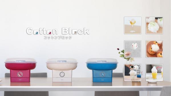 砂糖を入れると甘くて香ばしい香りとともに出来あがる綿菓子を、ドリンクやカップケーキ、パフェの上にトッピング。作って、見て、味わって楽しめるコットンブロックで、お家でふわふわの甘いデザートを楽しんだり、スタンドを使って綿菓子パーティーはいかがでしょうか。