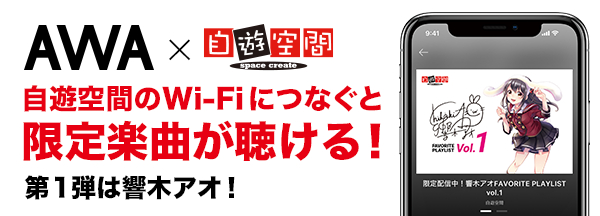 本取り組みは、自遊空間の店舗において無料で使用できるFREE Wi-Fiサービスに接続すると、どなたでも「AWA」が提供するスペシャルコンテンツを聴けるというものです。