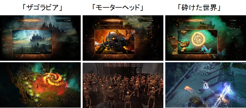 ヴィクターが暗黒勢に立ち向かう「ザゴラビア」、伝説のバンド、モーターヘッドの力とともに、邪悪な軍勢と相まみえる「モーターヘッド」、毎日生成されるハイレベル・ダンジョンへの挑戦「砕けた世界」。3つの全く異なる世界をお楽しみいただけます。