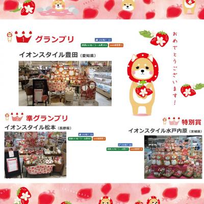 「心からほっとする健康と癒し」をコンセプトに商品を展開する株式会社ほんやら堂(本社:群馬県高崎市 代表取締役:藤永辰美)はイオンリテール株式会社の本州・四国の「イオン」「イオンスタイル」22店舗の化粧品売場で「いちごのしばずきん」を使った売場づくりコンテストを昨年12月10日から1月25日まで行い、その結果を2月1日に発表しました。