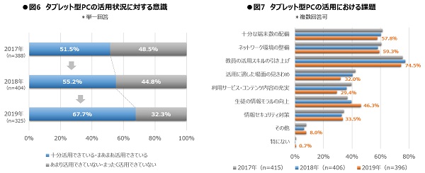 一方で、ICT導入のメリットであるペーパーレス化やデータ活用などによって、教員の教務を効率化する、授業内容をより深化するといった、既存課題の改善においても、その利用意義が見出されているようです。