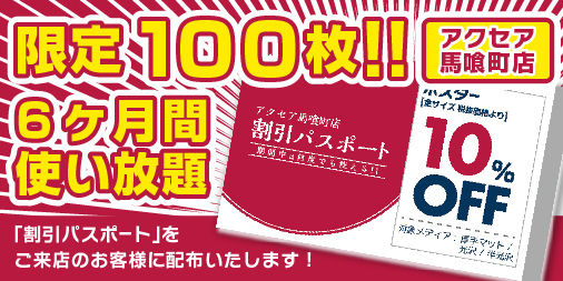 半年間何度でも使える「割引パスポート」を、ご来店の先着100名様に配布いたします。