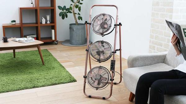 メタルだからこそ生み出せる上質な輝き、重厚感を暮らしに取り入れてみてはいかがでしょうか。縦に連なる羽根が3方向へ心地よい風と、新しい風の流れを作り出します。