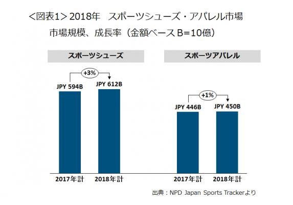 スポーツシューズ・アパレル 2018年計市場規模+2%