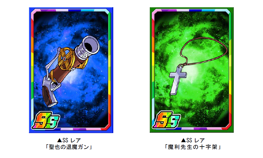 ダンジョンのボスモンスターを倒すと、まれに新たな限定子分カード「聖也の退魔ガン」「魔利先生の十字架」が手に入ります。限定子分カードは複数枚集めると進化ができ、子分スキルの効果が強力になります。