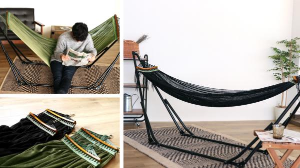 仲間や家族とのアウトドアも、家でのんびりと過ごす時間も、木と深い色合いのハンモックが上質なひと時に仕上げます。やわらかなメッシュ生地に包まれてゆったり過ごす休日。そんな、ハンモックのある憧れの生活を気軽に楽しんでいただける一台です。