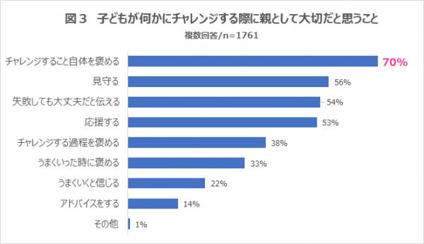 ・7割の親が、子どもがチャレンジする際に大切だと思うことは「チャレンジすること自体を褒める」と回答