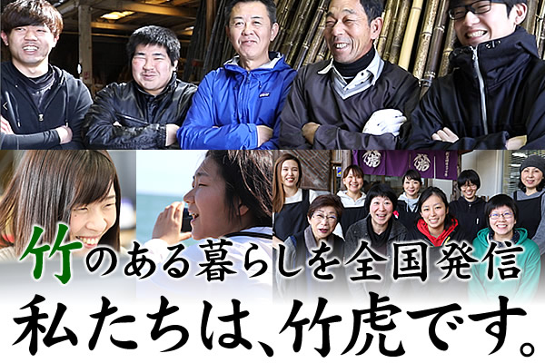 竹虎(株)山岸竹材店は創業明治27年の老舗竹材店です。この度、人員募集に伴い求人募集のページを全面リニューアルいたしました。高卒、新卒、中途採用などは問いません。「高知で働きたい」「インターネットで土佐の情報を発信したい」「高知が好きで、自然が好きで、人が好き」という方と一緒に働きたいと思っています。
