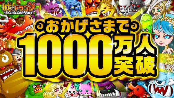 株式会社アソビズム(本社:東京都千代田区、代表取締役:大手智之)は、App Store・Google Playで好評配信中の『城とドラゴン』の登録ユーザー数が1000万人を突破したことをお知らせいたします。日頃よりお楽しみいただいているユーザーの皆様へ心より御礼申し上げます。これを記念して3月1日(金)より、対象者には最大10000ルビーやアバたまチケットが手に入る「1000万人突破記念おかえり&新人キャンペーン」開催や、1000ルビーが無料でもらえる「福袋タマゴ(壱千万)」がEGGショップに登場いたします。その他にも、3月は新機能「グルチャカップ」の実装など、さまざまなイベントを予定しております。今後とも『城とドラゴン』を宜しくお願いします。