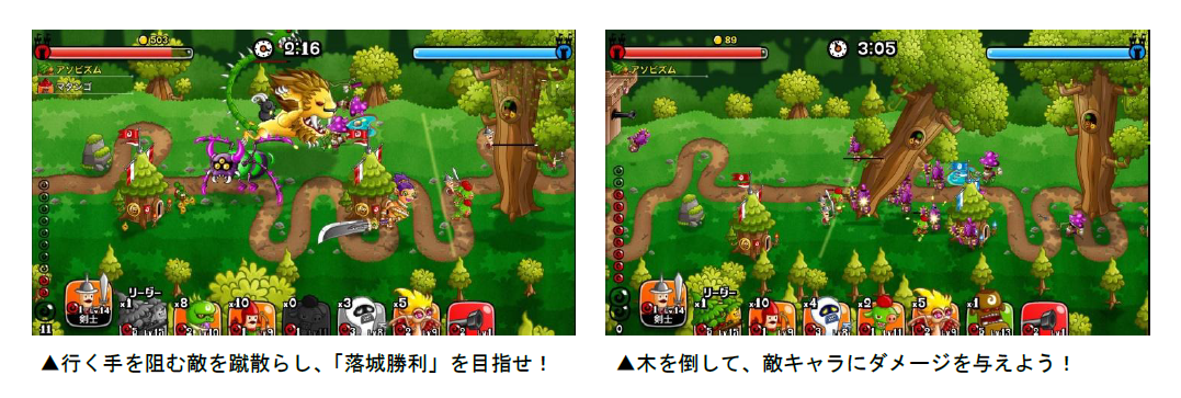 ・「小さい木」と「大きい木」がマップ上に存在し、砦を攻撃できるキャラで倒すことができる