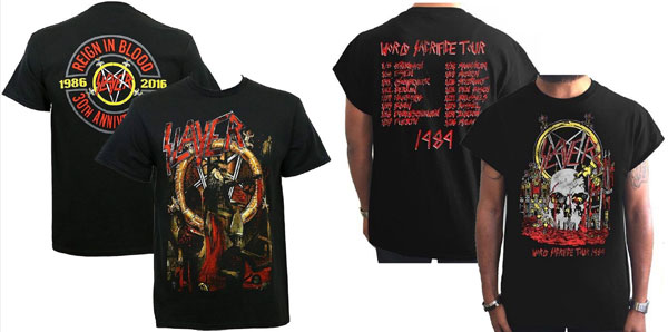 新しい世界のエンターテイメント流通ネットワーク・サービスを展開する株式会社JAMSHOPPING(本社:東京都渋谷区代表取締役:遠藤祐一)は、スラッシュ・メタルの雄「SLAYER(スレイヤー)」が最後のワールド・ツアーとして来日することを記念して、1986年にリリースされた名作「REIGN IN BLOOD(レイン・イン・ブラッド)」の 発売30周年記念として作られた公式メモリアルTシャツと人気を不動のものにした1988年リリースのアルバム「SOUTH OF HEAVEN(サウス・オヴ・ヘヴン)」の1989年に行なわれたツアー公式Tシャツの2タイトルを世界限定、各100着を復刻し2019年3月15日に一斉発売いたします。