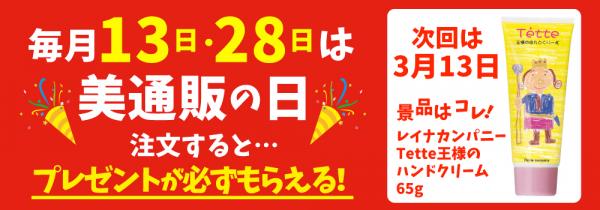これまで毎月28日だった「美通販の日」に13日が加わり、毎月13日と28日が「美通販の日」となります。