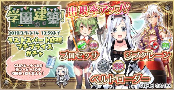 現在開催中のイベント「学園建築!」ラストスパート応援プチプライスガチャの開催です!