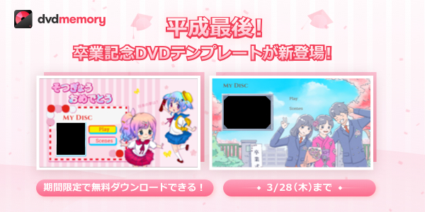 さらに平成最後の卒業記念DVDメニューテンプレートが3月7日に新登場!3月28日まで無料ダウンロード可能!詳しくは https://dvdcreator.wondershare.jp/dvd-menu.html でご確認ください。