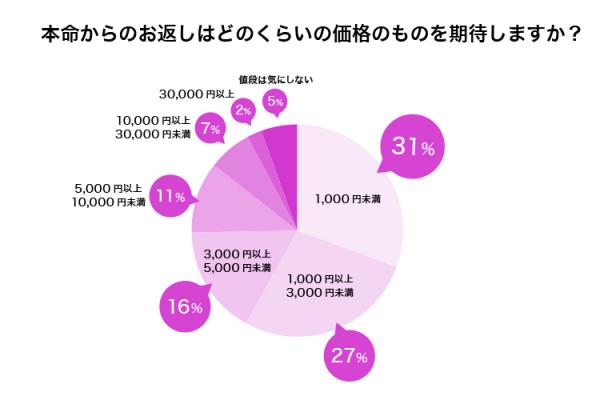 期待するお返しの価格は「1,000円未満」が最も多く、高い価格帯ほど期待する人は少なくなっています。