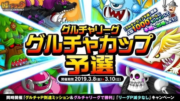 株式会社アソビズム(本社:東京都千代田区、代表取締役:大手智之)は、App Store・Google Playにて好評配信中の『城とドラゴン』で、2019年3月8日(金)より「グルチャリーグ グルチャカップ予選」を開催いたします。