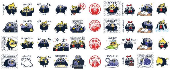 「冬」をテーマにしたLINEスタンプ「面倒だがトリあえず返信13」に続く、「面倒だがトリあえず返信」シリーズ最新作となるLINEスタンプ第14弾のテーマは、「学生」!今作では、今までにみたことのない学ランを着た「めんトリ」、「ヒデヨシ」、そして特別ゲストはセーラー服姿の「イモウト」!学生の方はもちろん、そうでない方も懐かしい学生時代を思い出しながらご活用いただけます♪新生活も是非「めんトリ」でお楽しみ頂けますと幸いでございます。