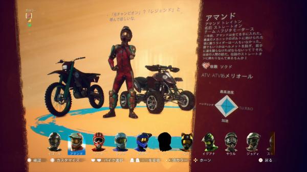好みの車両をATVとバイクから選択して、ライダーのアウトフィットや車両を選びましょう。