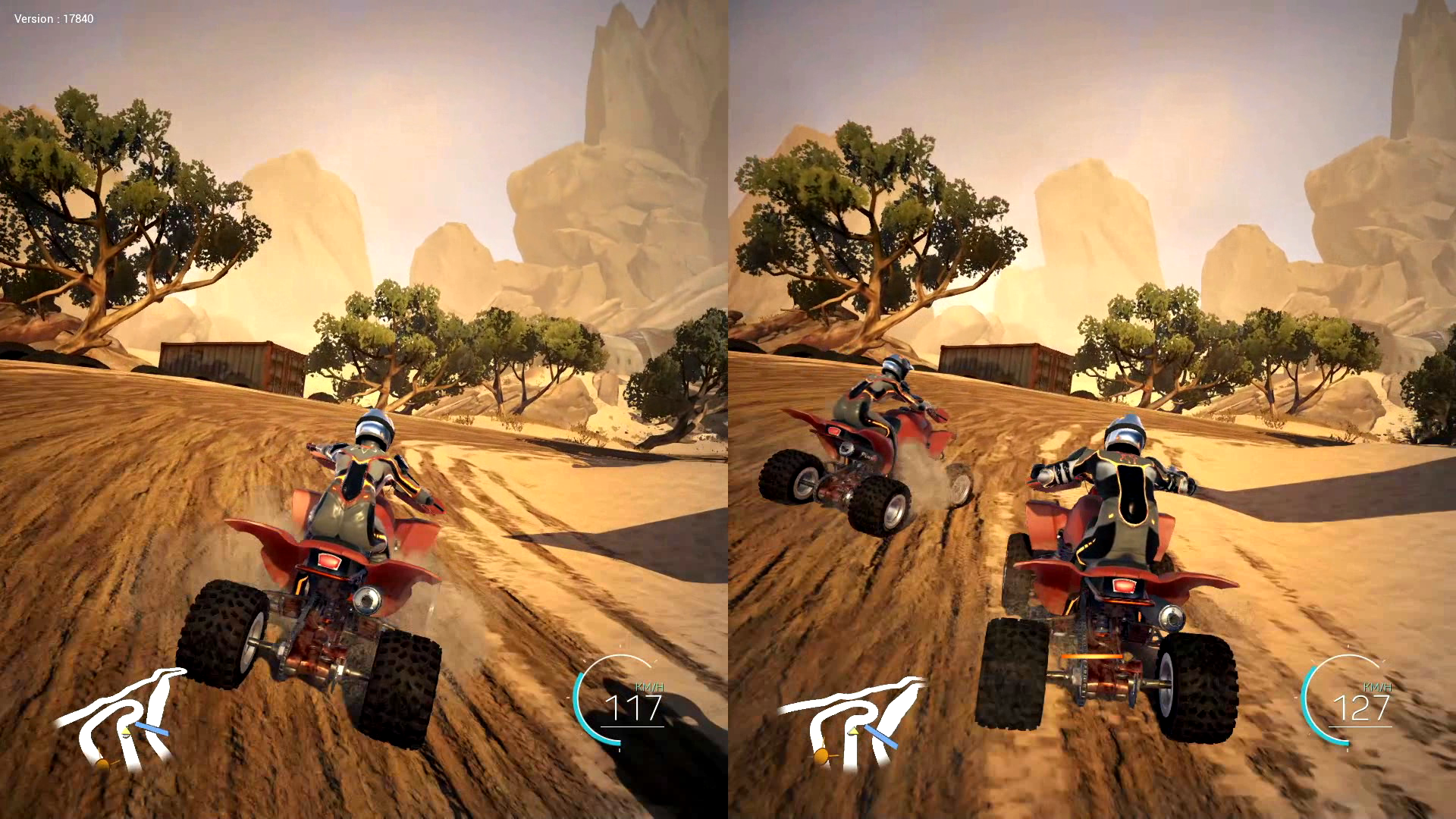 シングルプレイ(AIマシンとのレース)のオプション画面では、ATV+モトクロス混在のレースを設定することもできます。