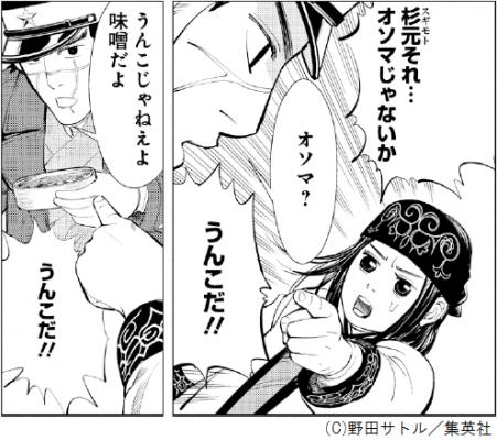 上のカットは、アイヌのヒロイン・アシ(リ)パが初めて見た味噌を「オソマ」だと勘違いしてしまうシーン(コミックス2巻8話より)。最も人気のある場面のひとつです。こういった話は実際に起こり得たのか、等の疑問について「ゴールデンカムイ」の名場面をふんだんに引用しながらひとつひとつ解説していきます。ファンの方ならば、思わず原作を読み返したくなるはずです。
