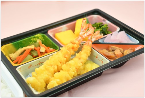 2019年3月の行事食は「車海老の天ぷら弁当」、2019年4月の行事食は「金目鯛煮付け弁当」を提供します。