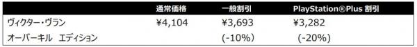 株式会社3goo(サングー)(本社:東京都渋谷区、代表取締役:ディ・コスタンゾ・ニコラ)は、本日3月19日スタートのPlayStationストア『SPRING SALE 2019』にて、『ヴィクター・ヴラン オーバーキル エディション』の初セールを実施中。一般10%引き、PlayStation Plus利用で20%引きとお得なプライスでお求めいただけます。