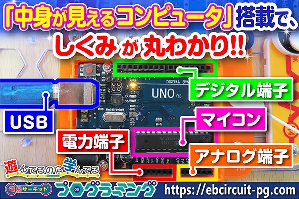 ★中身が見えるコンピュータ(ワンボードマイコンパーツ)搭載!
