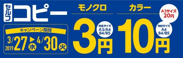 セルフコピーを4/30(火)まで通常よりお得にご提供いたします。