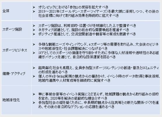 (詳細は「『2020年東京オリンピック・パラリンピック競技大会レガシー』に関する提言」ご参照)