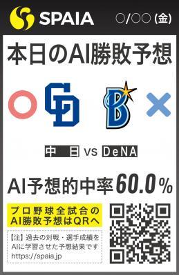 中日ドラゴンズの試合がある日程は毎日、中スポの紙面および中スポウェブにてAIによる勝敗予想が掲載されます。このAI予想は自社で構築した機械学習により、過去の対戦や選手成績をAIに学習させた結果を反映させています。