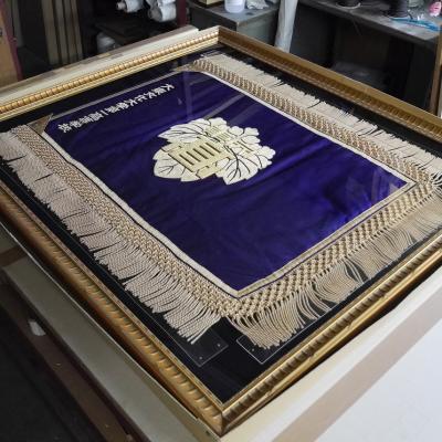 思い出の詰まった校旗を額装するサービスです。統廃合など使わなくなった校旗を額装することで、新しい学校でも歴史を受け継ぐことができます。額縁は6種類から選択が可能。細かいフレンジ部分もきれいに額装します。