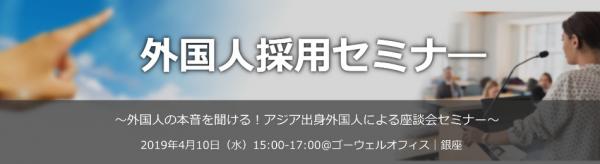 日本全国へ外国人人材の就職紹介を手掛けるゴーウェル株式会社(東京都中央区銀座 代表取締役社長 松田秀和)は、2019年4月10日(水)、同社の銀座オフィスにて「アジア出身外国人の本音が聞ける!外国人採用セミナー」を開催いたします。