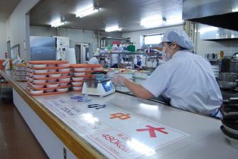 エー・アンド・デイの社員がもっとも多く在籍している開発・技術センター(埼玉県北本市)の社員食堂において、各メニューのカロリー数値や塩分量を表示し、菜食推奨の掲示を実施しています。