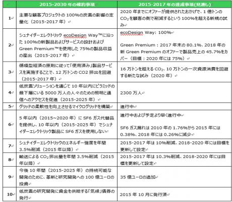 COP21の際に行われた10の約束に関する進捗