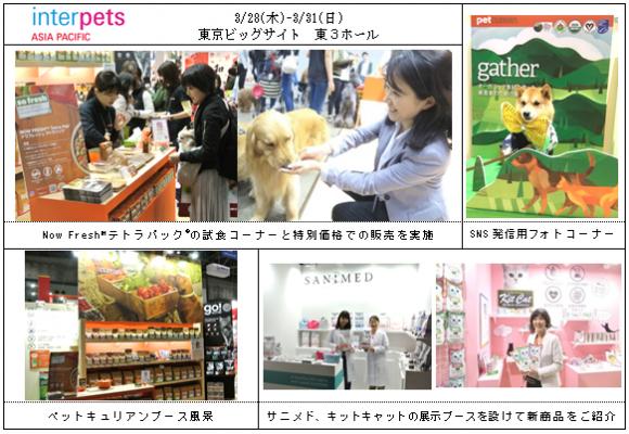 4日間の開催期間中、主力商品として展開しているペットキュリアン社(カナダ)の「NOW FRESHTM(ナウフレッシュ)」「GO! TM(ゴー)」「GATHERTM(ギャザー)」を始め、新商品の販売を開始したサニメド(オランダ)、キットキャット(シンガポール)の展示ブースを設けました。
