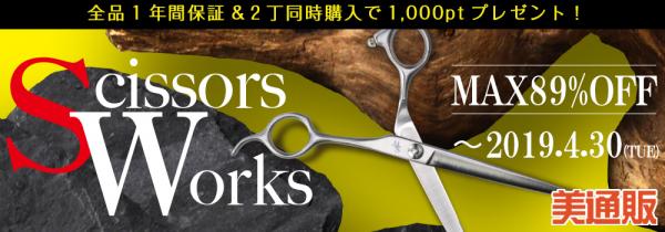 プロ向け美容材料の通信販売サイト「美通販」が、ご好評につき「SCISSORS WORKS/シザースワークス」キャンペーンの期間を延長いたしました。本キャンペーンは2019年3月30日(土)までを対象期間としていましたが、ご好評をいただいていることを受け、2019年4月30日(火)まで期間を延長し、新たに開催する運びとなりました。期間中は、理美容師様向けの高品質シザーを「美通販」特別セール価格にて販売いたします。最大89%OFFという大変お得なキャンペーンとなっておりますので、この機会にたくさんの方々にご利用いただければと考えております。