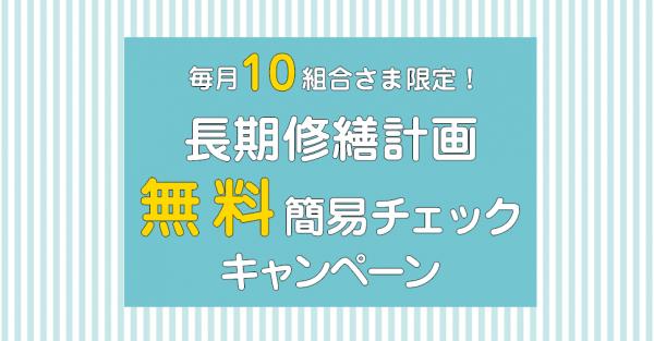 また、毎月8日スタート、10組合さま限定の長期修繕計画無料簡易チェックキャンペーンもサイトをリニューアルして本日より受付開始いたします。