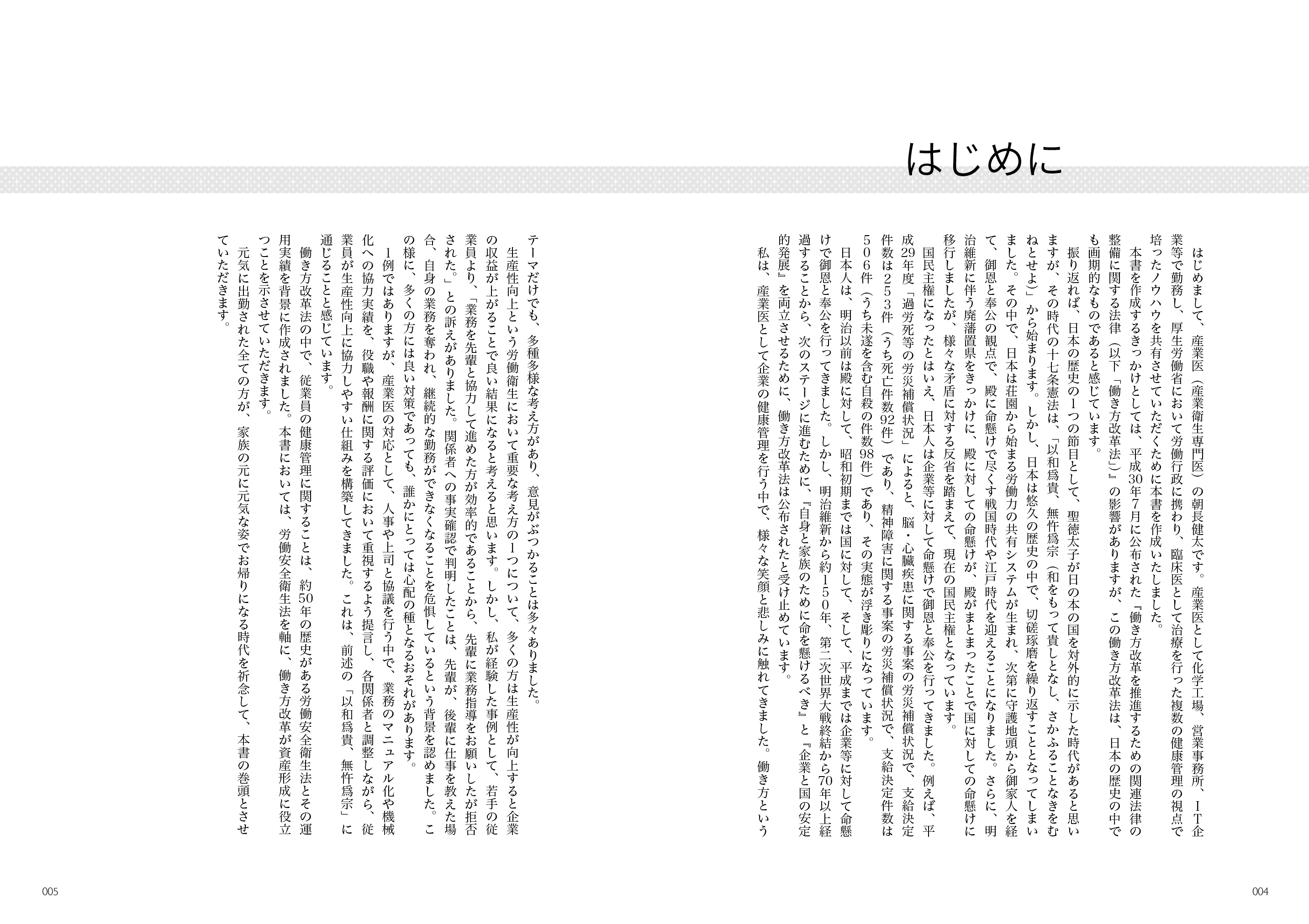 働き方改革がスタートした令和の時代は、企業がこれまでにない変化を求められる時代でもあります。残業、有給、生産性、メンタルイルネス、離職、、、企業内のさまざまな問題を、本書は労働者の健康管理の専門医が働き方改革を法律から読み取り、資産形成につながるアイデア、ノウハウとして提示。適切な健康管理体制の確立がどのように企業の利益向上につながるのか、図解・イラストを多用しながら、原点から読みやすく解説します。