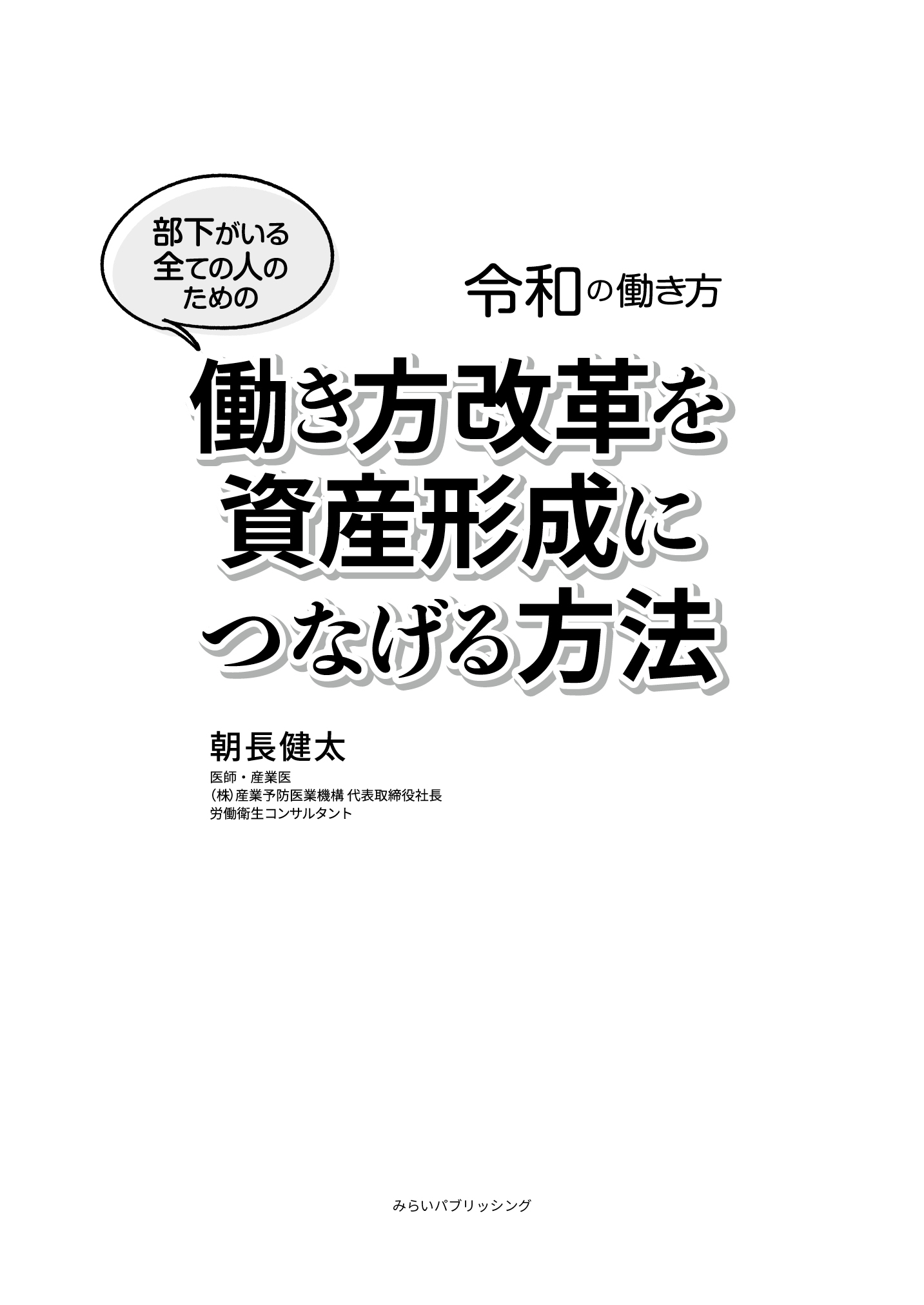 みらいパブリッシング(所在地:東京都杉並区高円寺、代表取締役:松崎義行)は「令和の働き方 部下がいる全ての人のための 働き方改革を資産形成につなげる方法」を4月25日に刊行いたします。 著者:朝長健太 本体900円+税 B5判 並製 96ページ ISBN:978-4-434-25987-6