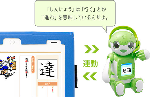 『ミラクルロボ』の発話音声は、国語で漢字の「達」を習う時期には「しんにょう」の意味を語りかけるといったように、学習内容そのものへの興味を引き出すことや、全国の会員の学習ログデータの分析か