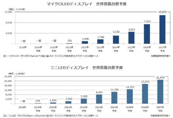 株式会社矢野経済研究所(代表取締役社長:水越孝)は、2019年のマイクロLEDディスプレイ及びミニLEDディスプレイの世界市場を調査し、アプリケーション別の採用動向、参入企業動向、将来展望を明らかにいたしました。