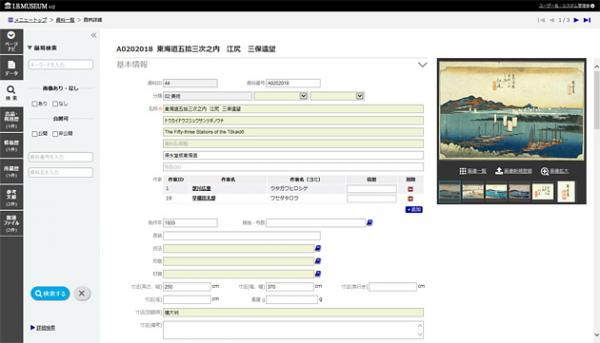 博物館の収蔵品情報を管理することを目的としたパッケージソフトです。1992年の発売以降、全国の博物館を中心に約400施設(クラウド版も含む)への納入実績を有しており、日本のミュージアム業界では事実上の標準システムと言えるシェアを確保しています。資料の目録情報及び個別情報のほか、展示や貸出に関する業務情報とそれに伴って発生する履歴情報の登録・管理に加え、インターネット上のウェブサイトや来館者向け専用端末などでの情報発信もカバーするなど、博物館学芸員が学芸業務で必要とする機能を網羅。今回は、業務システムと情報発信システム両面の機能を併せ持つ点、開発元の早稲田システム開発株式会社が全国のデジタルミュージアム事業で豊富な実績を有する点などが評価され、当プロジェクト向けのカスタマイズを前提に≪I.B.MUSEUM≫が採用されたことを2019年4月11日に発表します。