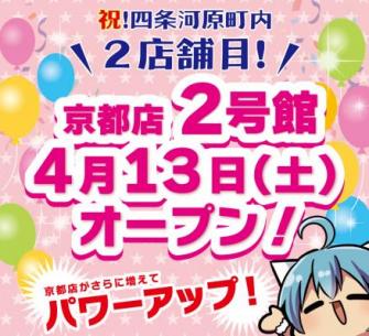 らしんばん京都店2号館は、4月13日(土)に同市内のCOAST21 ビル1~2F(京都府京都市中京区円福寺前町279)に新規オープンいたします。