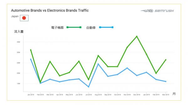 調査名:「Webサイト流入量比較~自動車業界と電子機器業界~」