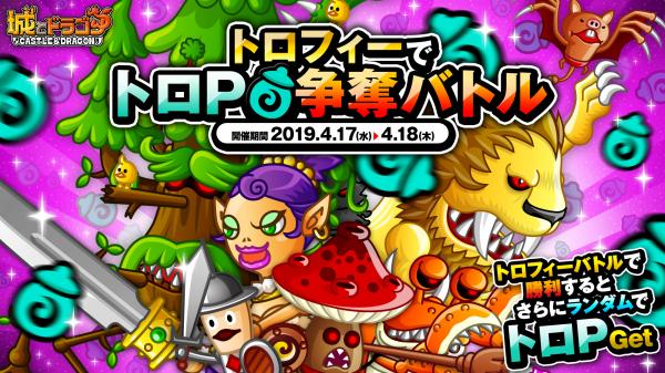 株式会社アソビズム(本社:東京都千代田区、代表取締役:大手智之)は、App Store・Google Playにて好評配信中の『城とドラゴン』で、2019年4月17日(水)より「トロフィーでトロP争奪バトル」を開催いたします。