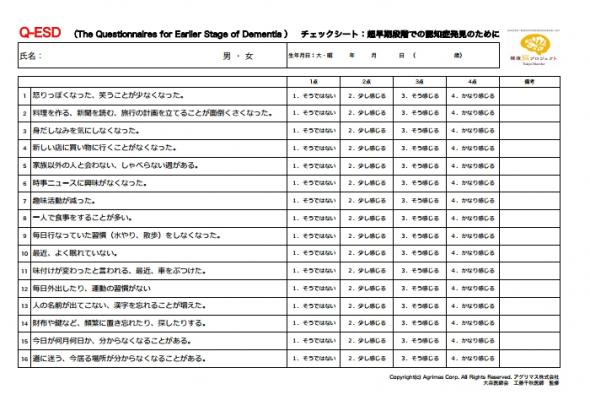 ・生活意欲・認知機能の評価チェックシート「Q-ESD」について