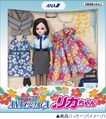 全日空商事株式会社(本社:東京都港区、代表取締役社長:西村 健)は、運営するANA公式ECサイト「ANA STORE(エーエヌエーストア)/ANA(エーエヌエー)ショッピング A-style(エースタイル)」(https://www.astyle.jp/)にて、株式会社タカラトミー(本社:東京都葛飾区、代表取締役社長:小島 一洋)の着せ替え人形「リカちゃん」とANAがコラボしたオリジナル商品『A380就航記念 オリジナルCAリカちゃん ~Special Hawaii Set~』を発売いたします。4月22日(月)10時より「ANA STORE/ANAショッピングA-style」にて予約受付を開始いたします。