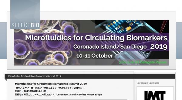 学会:「Microfluidics for Circulating Biomarkers Summit 2019-血中バイオマーカー対応マイクロフルイディクスサミット 2019年」